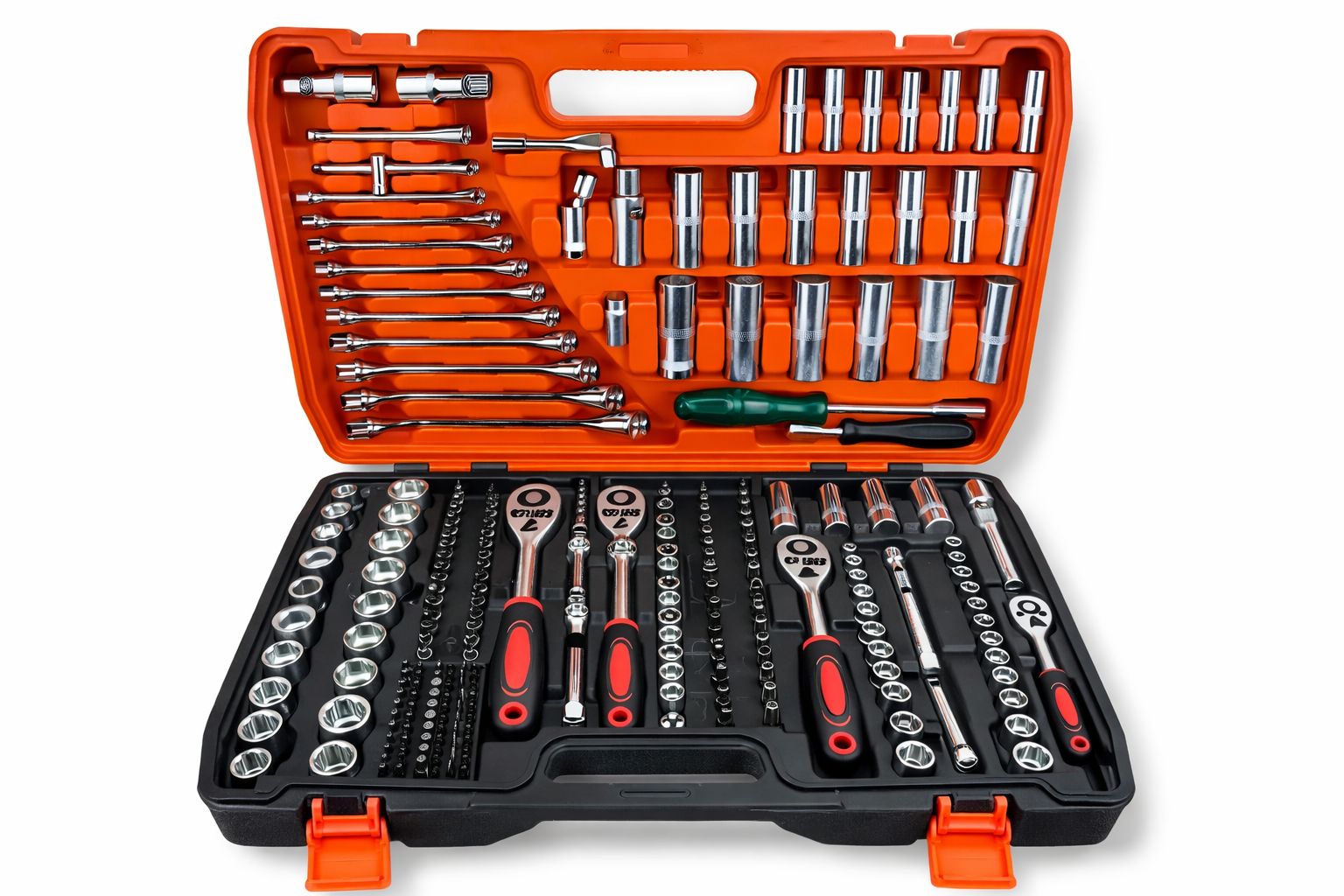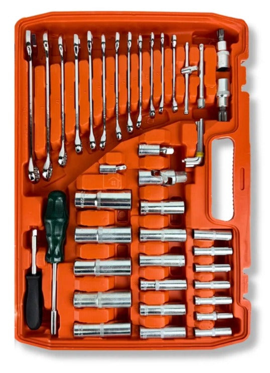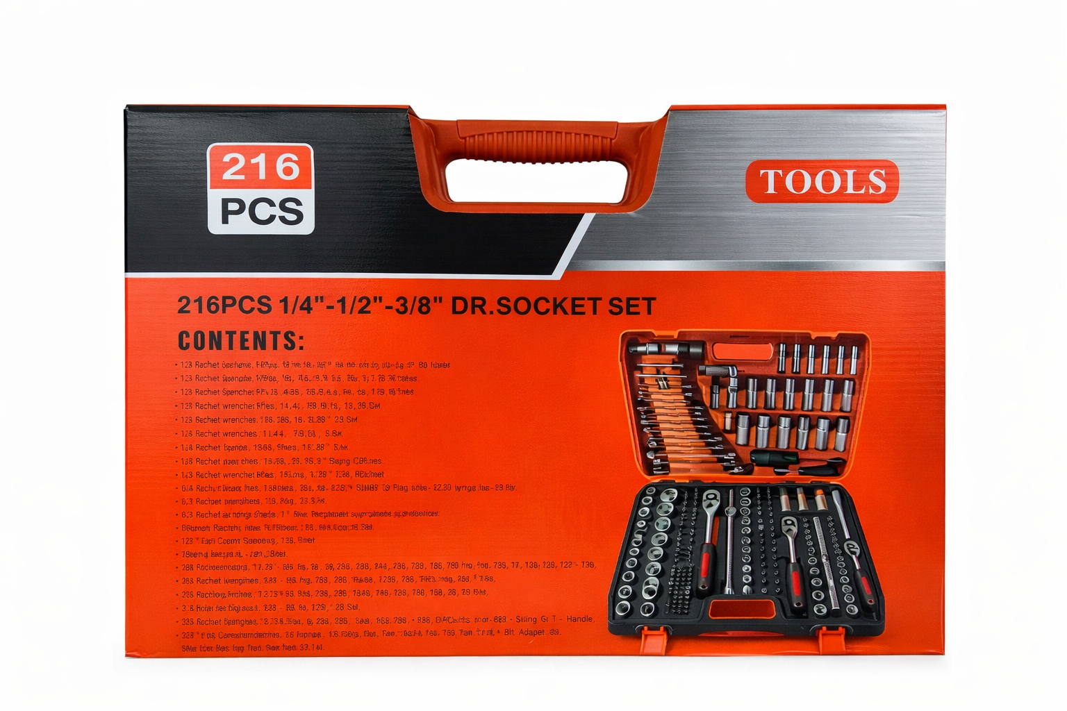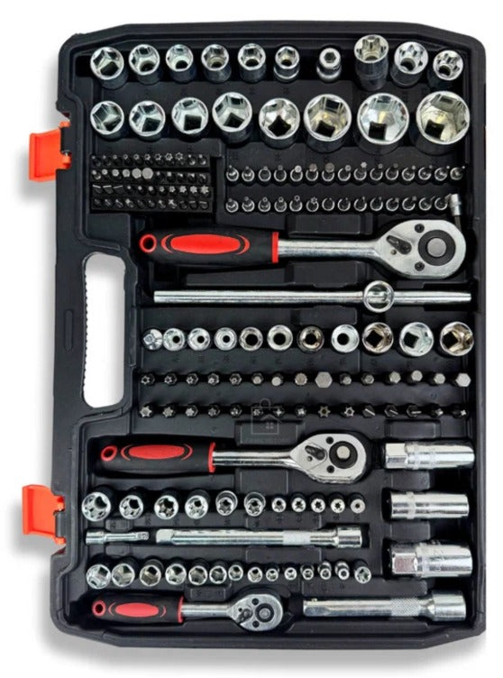El juego de herramientas de 216 piezas es un set completo y versátil, ideal para mecánica, mantención, reparaciones del hogar y uso en taller. Incluye una amplia variedad de dados, llaves, puntas, extensiones y accesorios, permitiendo afrontar prácticamente cualquier trabajo con una sola solución.